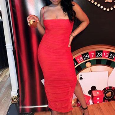 AMIE ruched long bodycon dress